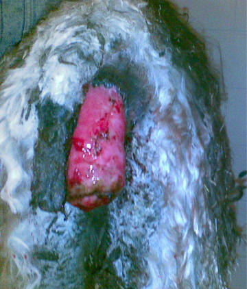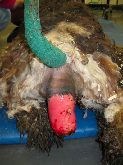 | Found in this condition, this one year old male was transported to WSU Pullman for evaluation and surgery. He reportedly was in this condition for about two months prior to surrender.